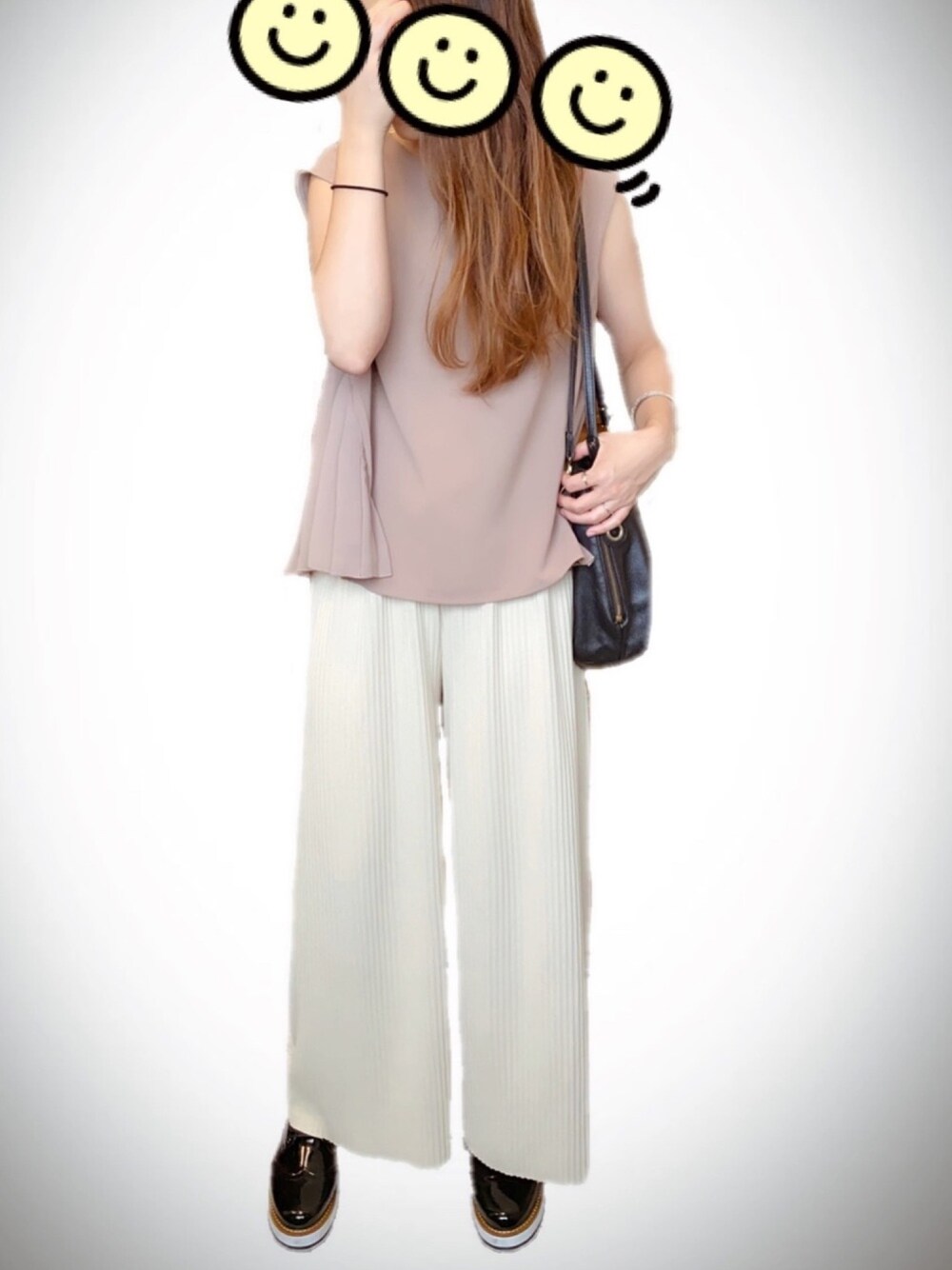 beige✖️ivory 通勤スタイル ブラウスのサイドにも さりげなくプリーツ♡ プリーツにハマりすぎてやばい🥺
