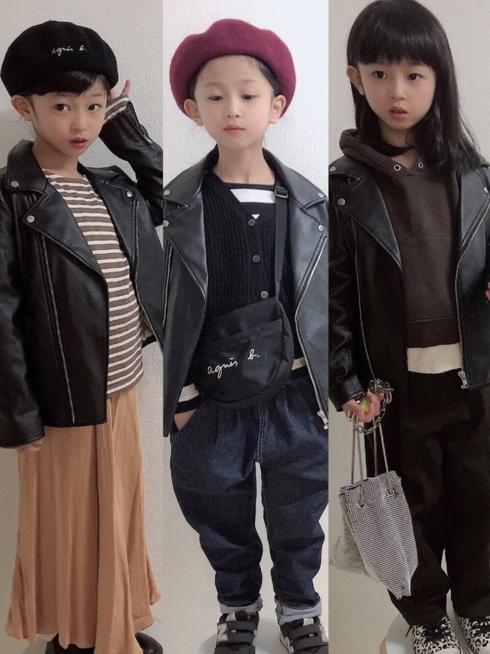 riitaroのライダースジャケット「【ママとお揃い】キッズフェイクスウェードライダースジャケット」を使ったコーディネート