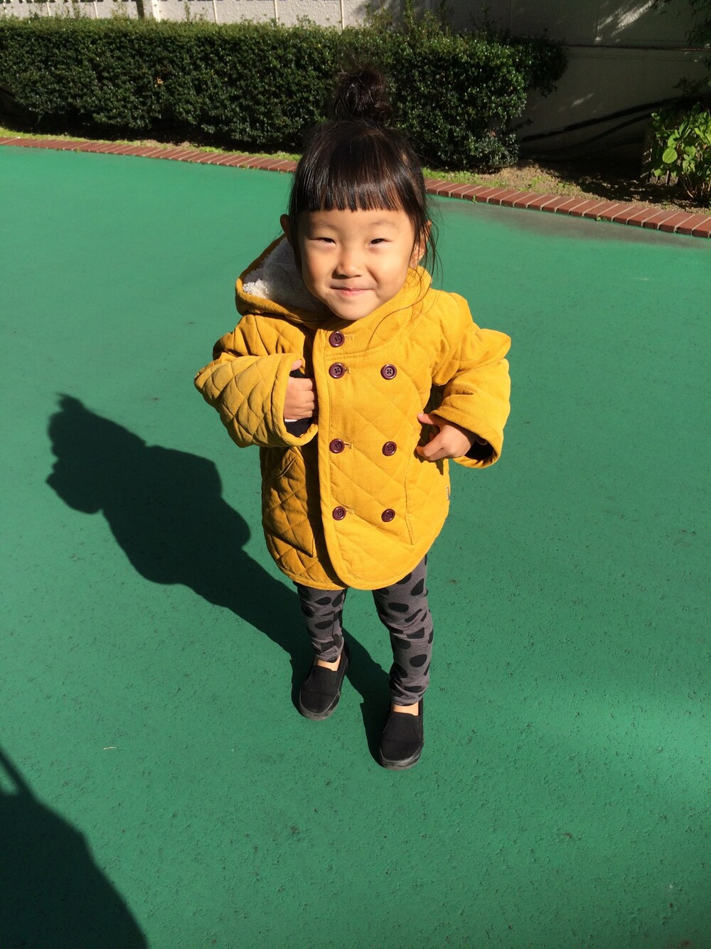 グレー系のその他パンツを着用したキッズの秋コーディネートの1枚目の写真