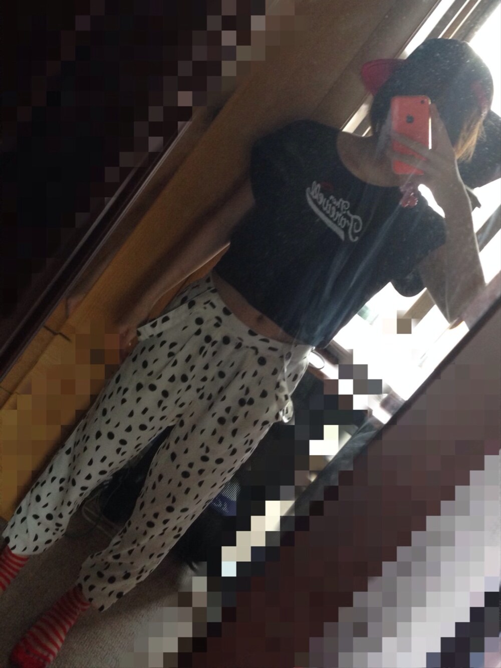 サロペットを下ろして腰ではいて 丈の短いTシャツを上に合わせて 腹チラコーデ! ショートボブにこのズボンだと かなり印象変わります💓 キャップはきのうのプレゼントでもらいました! トップスとズボンはjouetie いつもの厚底合わせました!