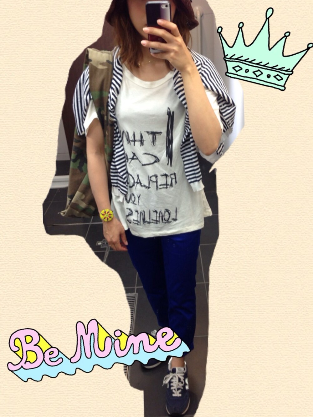 今日も子連れなのでカジュアルです。。 ビーズ使いのヘアゴムがお気に入り!