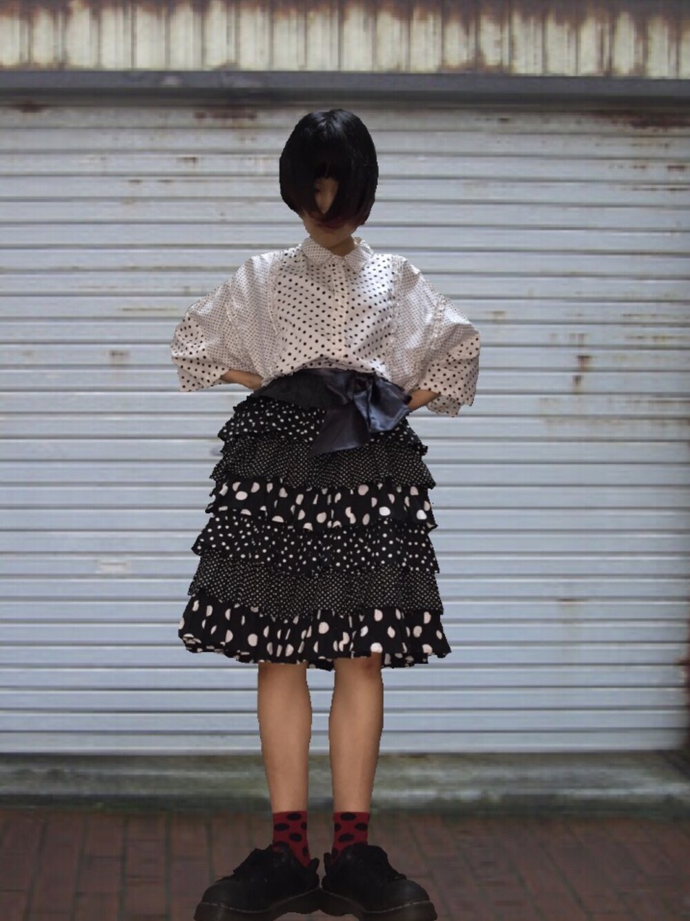 雨の日。全身ドットで。マーチンは雨の日の味方。