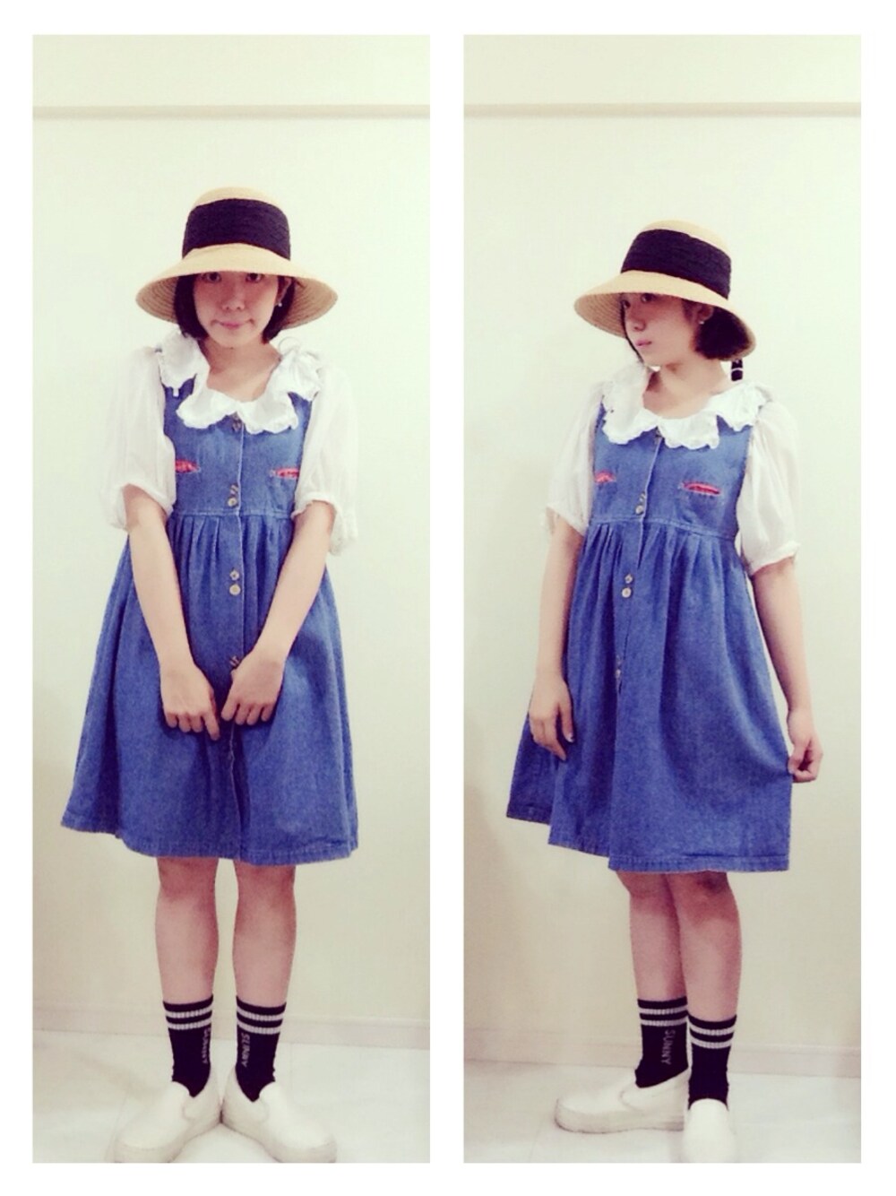 とっぷす franche lippe わんぴ USED(PANAMA BOY) くつ ? くつした 3足1000円 子供っぽく ♡⍥⃝ 幼い感じでまとめてみました♡ PANAMA BOYの わんぴーすは、 ポケットが可愛いくて お気に入り、、♡