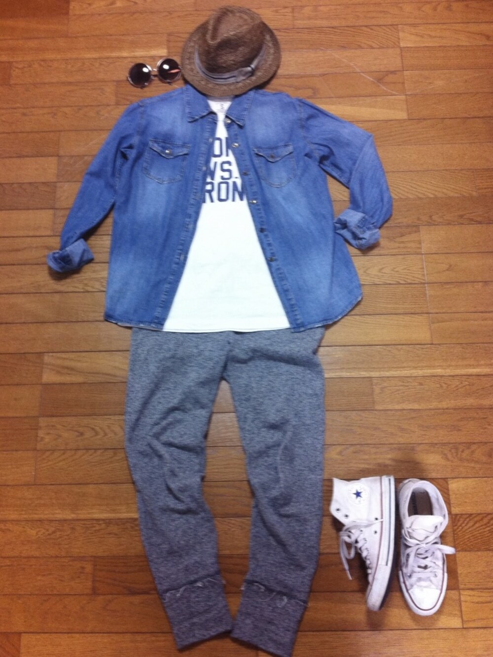 スウェットパンツ : ZARA デニムシャツ : ungrid
