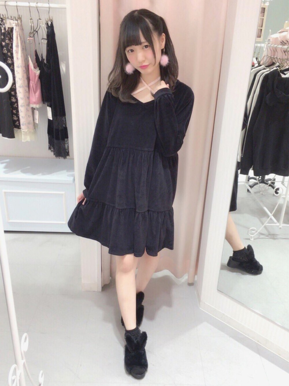 black × pink ティアードワンピースでラクチンコーデ 🎀