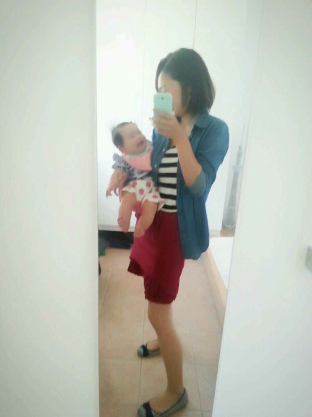昨日のリンクコーデ👗 娘は苺づくし🍓 私はイチゴ柄の服はもってないので😅 ボーダー&赤でリンク😘