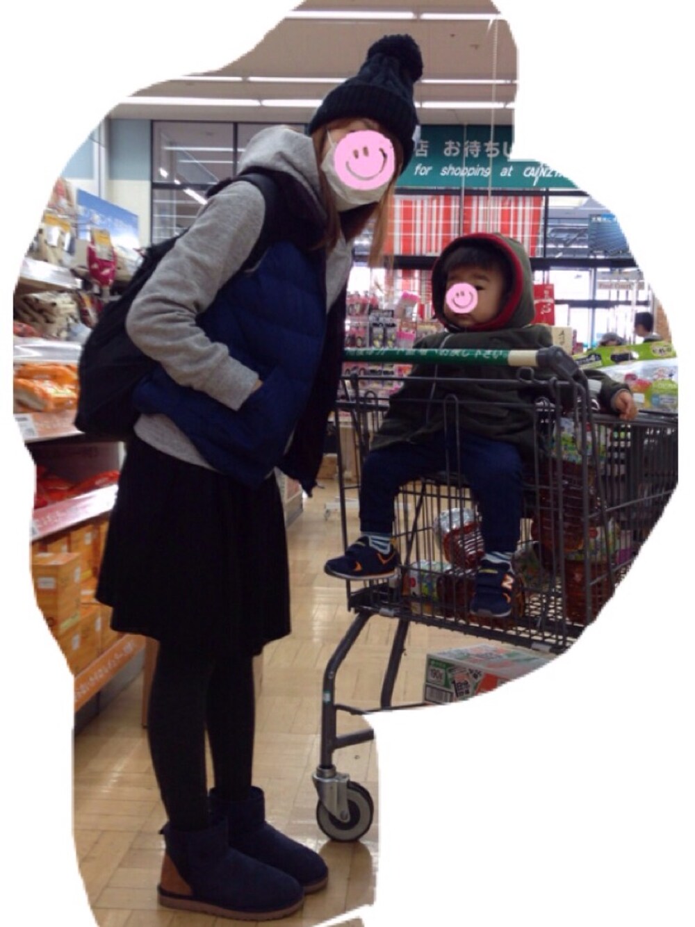 ニット帽:Lee×しまむら パーカー:ヘルムートラング×ユニクロ スカート:しまむら はじめてダウンベスト着ました◡̈♥︎ 息子とおそろいしたくて買いました◡̈笑 いつもカジュアルなのに、 いつもにましてボーイッシュ😅