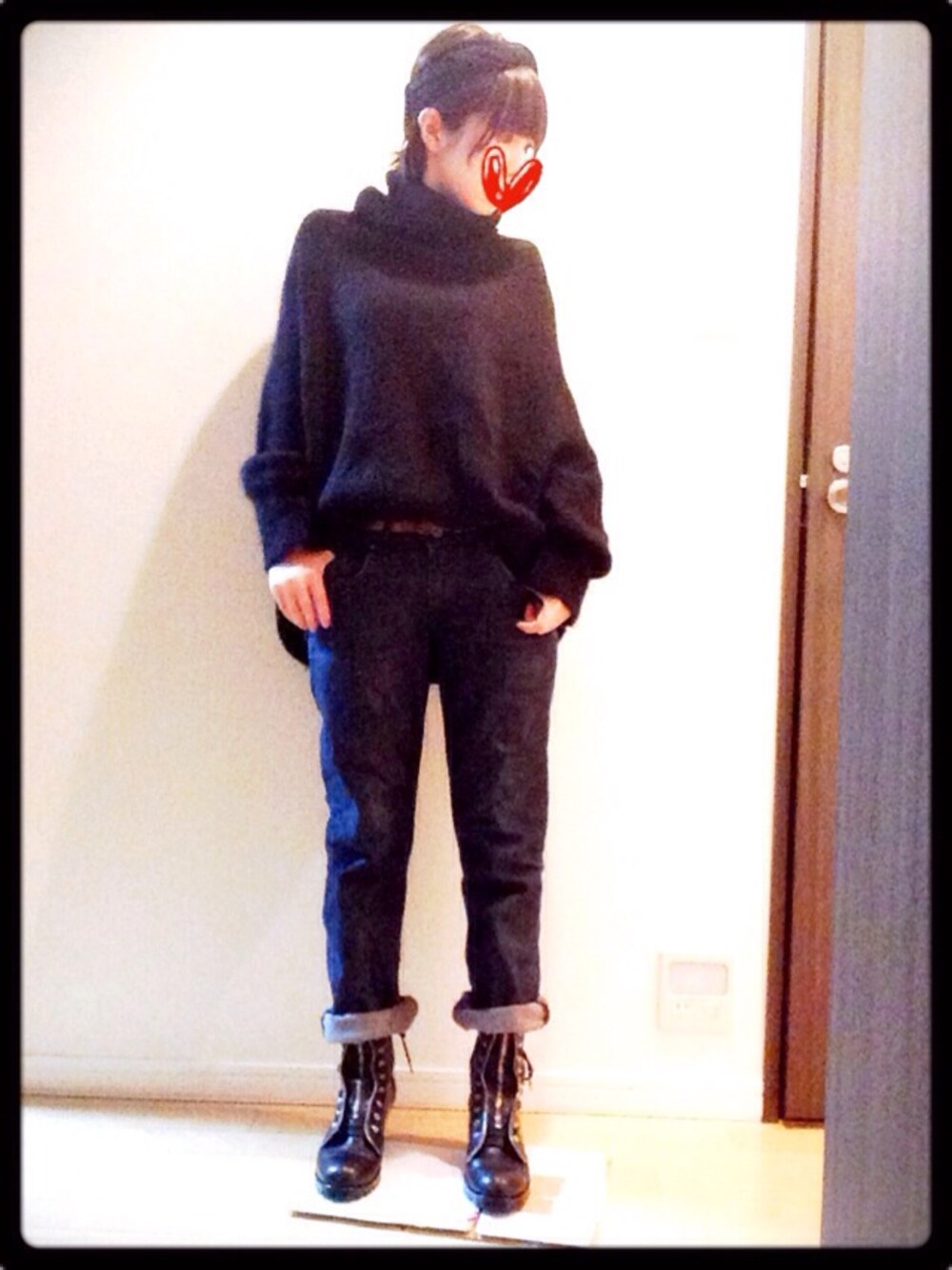 head:ヘアバンド/TOGA tops:タートルネックニット/LIMI.feu belt:細身ベルト/beauty&youth pants:デニム/古着 boots:ショートブーツ/LIMI.feu