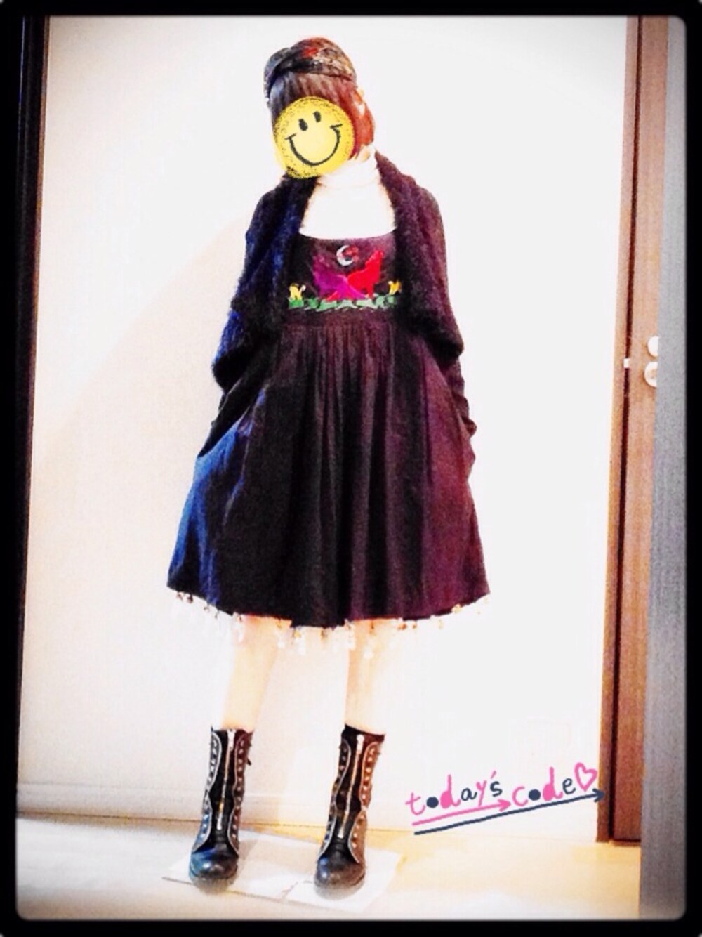 outer:カーディガン/s-twelve onepiece:狼柄ワンピース/made inHEAVEN inner:タートルネックニット/uniqro shoes:ショートブーツ/LIMI.feu