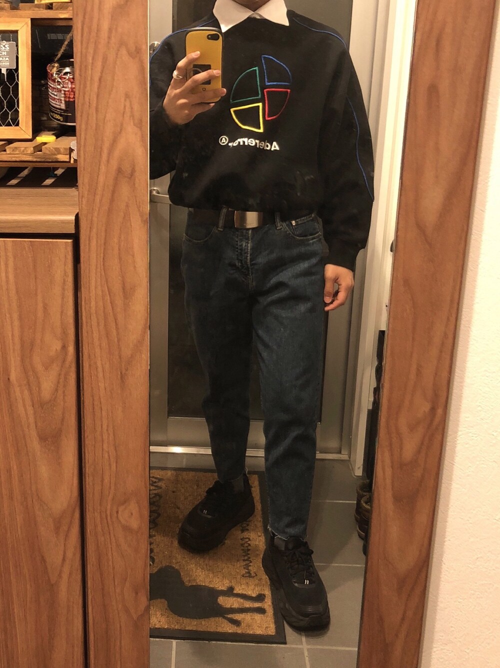 このコーデは半年前に着てた物です! アーダーエラー は元々がとても大きめのシルエットになっていて、普通に着るのもいいですが、インすることで可愛らしさが少し上がると思います!