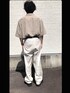 今回は、まだ暑い今でも涼しく着用いただけるリネン混のパンツを使ってみました! こちらのサイズはMサイズからのサイズ展開で、Mサイズを着用した感じですが、サイズ感はごく一般的なMサイズという感じでした。私の場合だとウエストが少々緩いですが、ベルトを締めると着用出来るといった感じです!丈はMサイズなので約3cm程長いのかなといった感じでした!シルエットは細めなので、ちょっと長いと感じる方は丈を直した方が良いのかもしれません! トップスですが、こちらもMサイズからの展開でMを着用しました。独特な生地感で柔らかく、ずっと触っていたくなるような生地で着心地がとても良かったです! カラーもこのアイボリーの他に3色あるので迷ってしまうかもしれませんが、お好みのお色を選べるのもいいと思います!