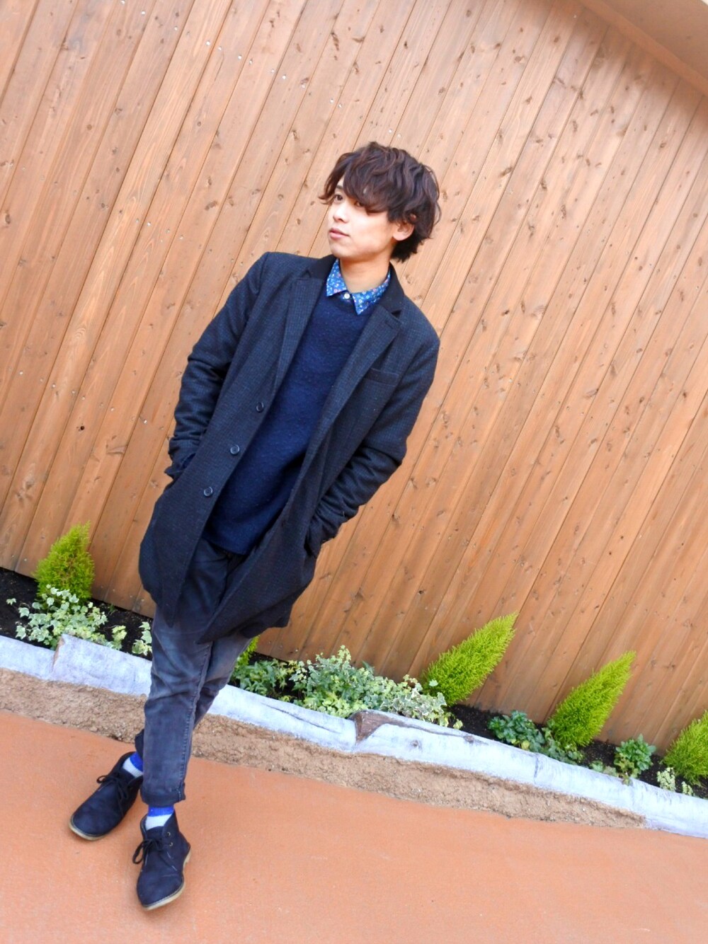 ふるかわ りきやのチェスターコートを使ったコーディネート