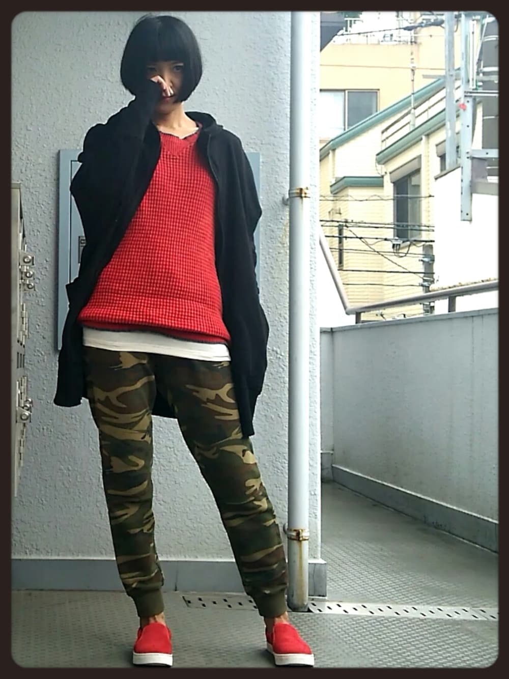 nikaのニット/セーター「K1987 パウダーケミカルワッフルプルオーバー」を使ったコーディネート