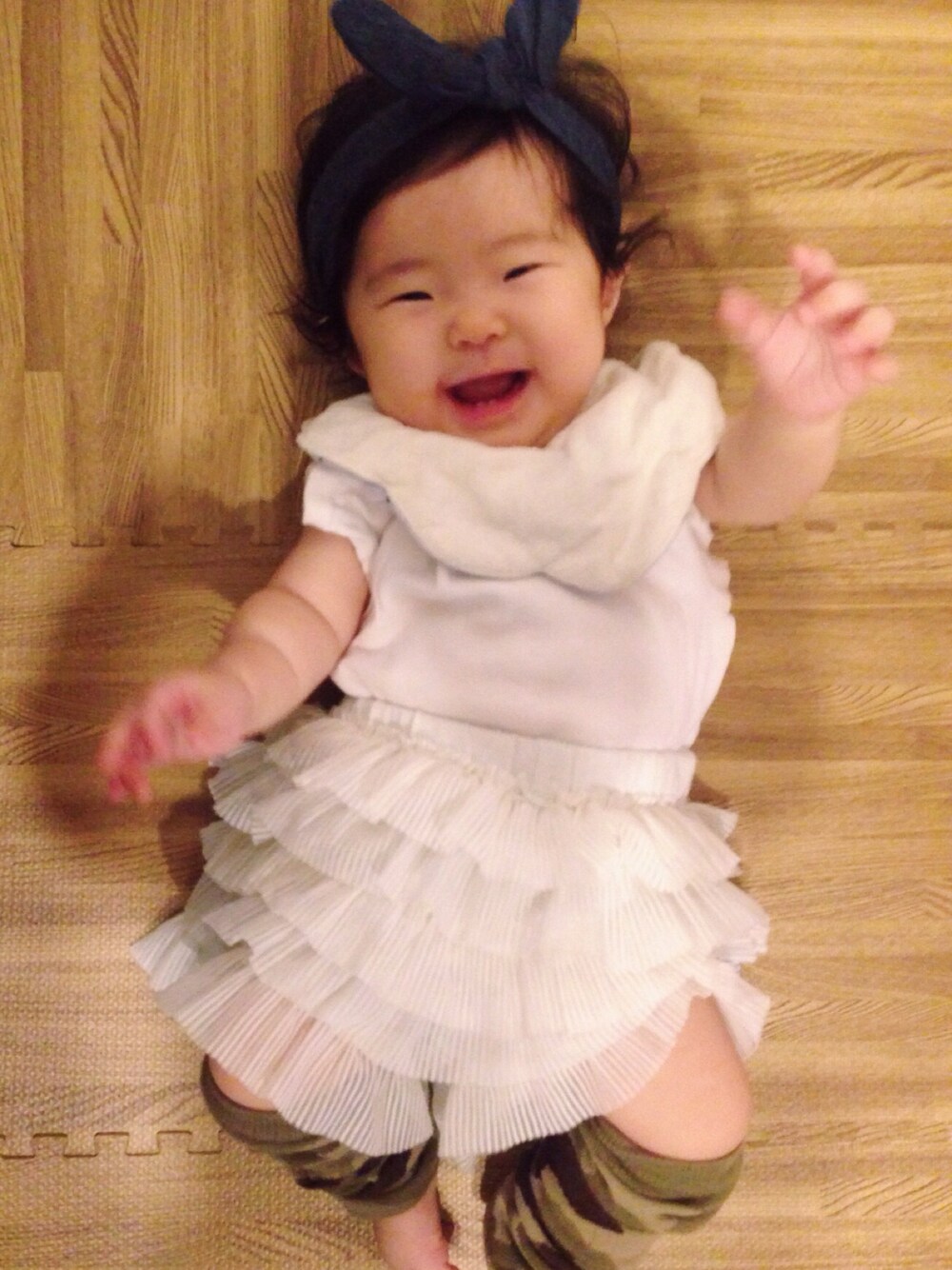 ホワイトコーデ👶 最近ズリバイするからレッグウォーマーをカモフラで❤️