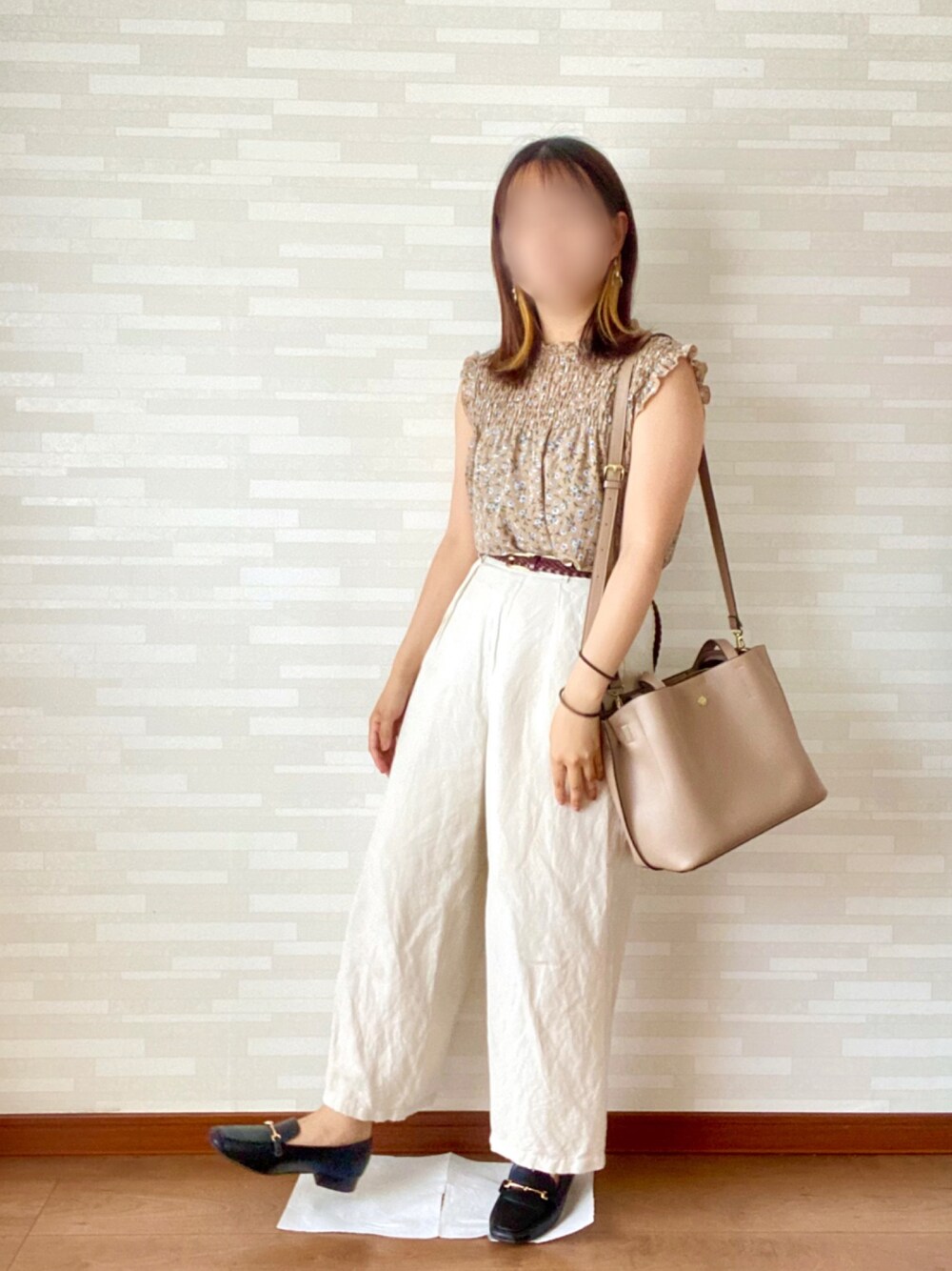 リネンパンツと花柄ノースリーブで 涼しくオフィスカジュアル✨