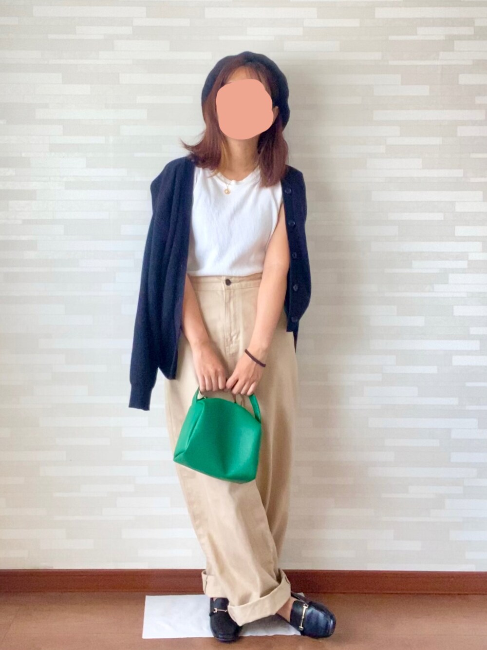 白、黒、緑の3色コーデ🤍🖤💚 ベレー帽とカーディガンで秋らしく✨