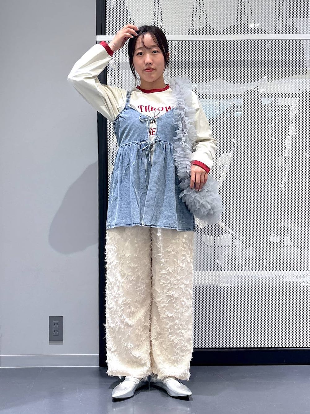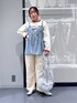 ご覧頂き、ありがとうございます♪ トップスFサイズ リブが可愛いTシャツです🫶🏻 店頭でもキャミ合わせが 人気です! ボトムFサイズ ウエストはゴムで楽ちん✨ シンプルになりがちなコーデも これでこなれ感UP❗️ 他にもスタイリング載せてます →