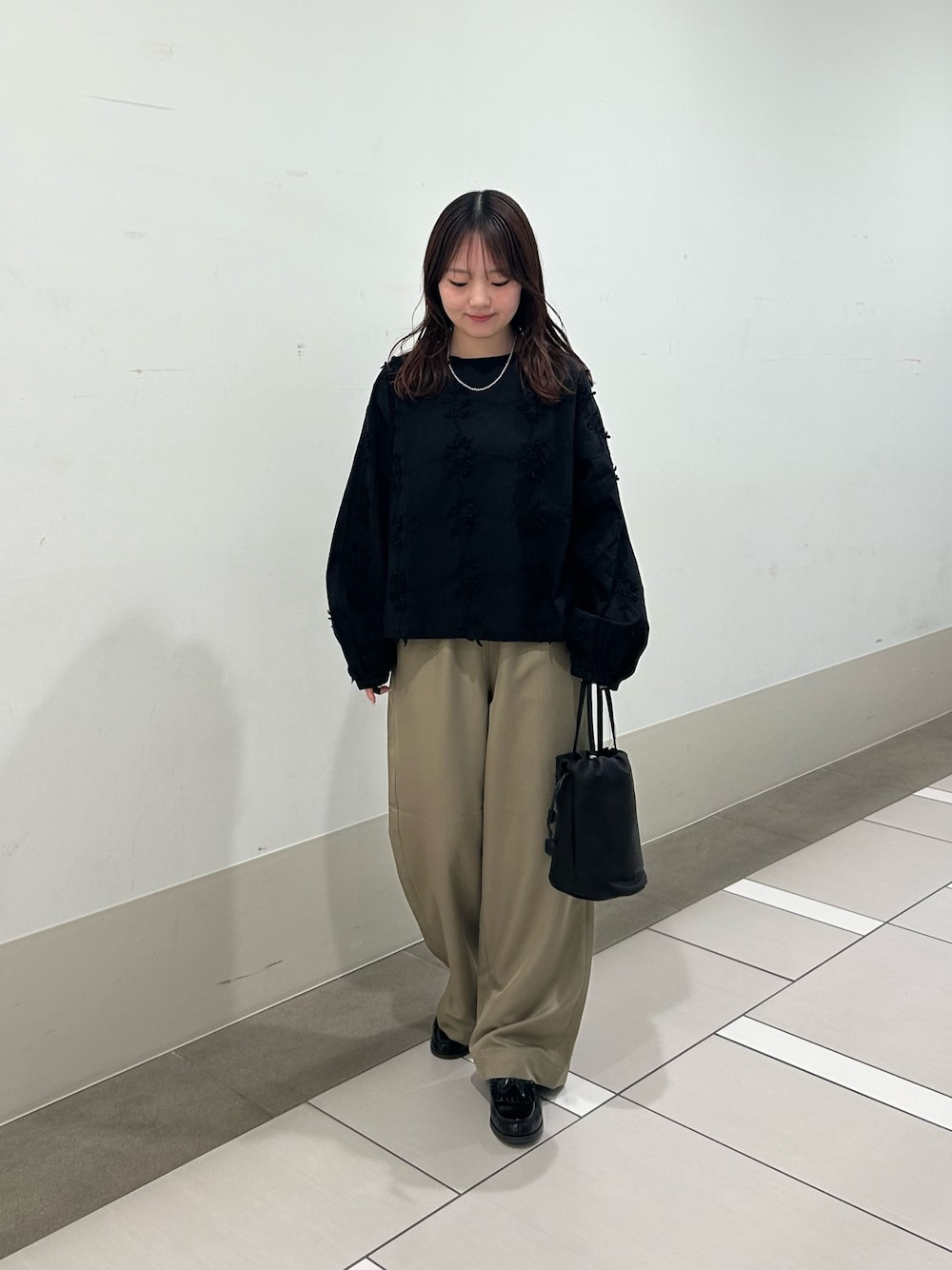 立体刺繍が綺麗なブラウスです👚 ブラウスは甘い印象になりがちですが、黒で大人っぽくシックな雰囲気に◎ ふんわりとしたシルエットですが、首とともすっきりなデザインなので、着膨れせず綺麗に着ていただけます♪ さらっとしたツヤ感のあるパンツと合わせて綺麗めなコーデにしましたが、デニムと合わせてカジュアルな雰囲気も可愛いです! コーデの主役になるブラウス☘️春のトップスにおすすめなアイテムです〜! 2色にまとめてすっきりとしたコーデです♪
