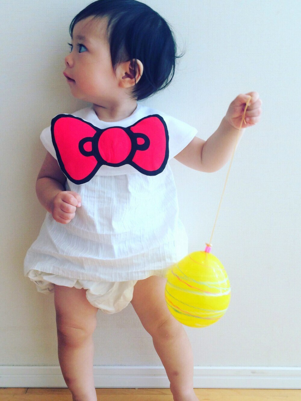 RIKOのスタイ/よだれかけ「MARLMARL HELLOW KITTY BIG RIBBON BIB / マールマール ハローキティ ビッグリボン スタイ」を使ったコーディネート