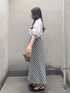 ♡tops リボンやフリルが程よく甘くて大人可愛いブラウス。 リボンを解いて首元を開けると抜け感も出せて 違った雰囲気に気分でアレンジが可能です◎ 軽やかな綿麻素材で通気性が良いのも嬉しい! デニムと合わせたコーデもおすすめです♡ ♡skirt モノトーンのギンガム柄が甘すぎず上品で 大人っぽく着られるスカート。 ウエストはゴム+ドロストでサイズ調整可能◎ 広がりすぎないシルエットでTシャツなどの 合わせもキレイ見えします! 軽くてシワになりにくい素材なのも嬉しい♡ 〈 着用サイズ 〉 tops : F skirt : 38