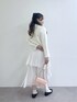 ♡tops ゴールドボタンが上品な雰囲気の ジャケット未満カーディガン以上の一枚。 ふんわり柔らかいのに型崩れしにくく きれいなシルエットをキープします◎ 短め丈でどんなボトムともバランス良く 合わせられ、羽織るだけでコーデを ワンランク格上げしてくれます♩ ♡skirt 上品な落ち感と広がりすぎないシルエットで 大人っぽく仕上がるティアードスカート。 歩くたびに揺れて、女性らしさを引き立てます♡ ニットやブラウスの合わせはもちろん Tシャツなどでラフなスタイルとも相性抜群です◎ 〈 着用サイズ 〉 tops : F skirt : 38