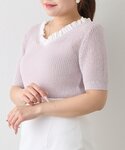 Riko(La boutique BonBon official)のニット/セーター「【大人っぽ映え】ペーパーヤーンフリルVネックニット」を使ったコーディネート
