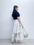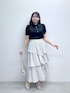 ♡tops フリルチュールのボリューム袖が目を惹く 大人フェミニンなブラウス。 サテン地のシャツカラーにビジュー釦を あしらい、上品で華やかな印象に♡ シンプルなボトムと合わせるだけで コーディネートが完成する一枚です♩ ♡skirt ふんわり揺れるティアードデザインが 華やかなプリーツスカート。 さらっとハリのある素材でシワになりにくく ウエストはドロストで調節可能◎ きれいめにもカジュアルにも着回せる 一枚でコーデが華やぐ万能アイテムです♡ 〈 着用サイズ 〉 tops : F skirt : F