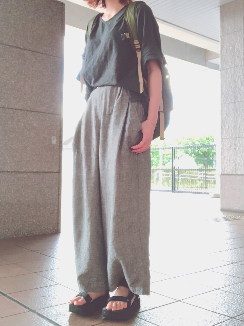 ワイドパンツは麻も入っていて、 この時期着やすさ抜群です☺︎
