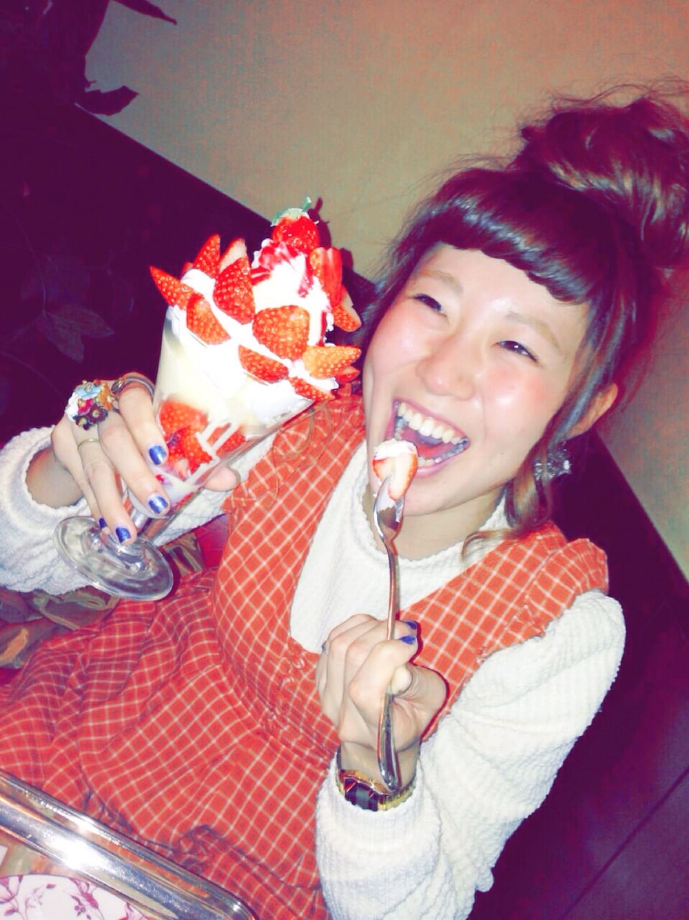 crispのワンピース。 茜珈琲館の 季節のパフェ 念願のイチゴでした! メリークリスマスイブ ♡