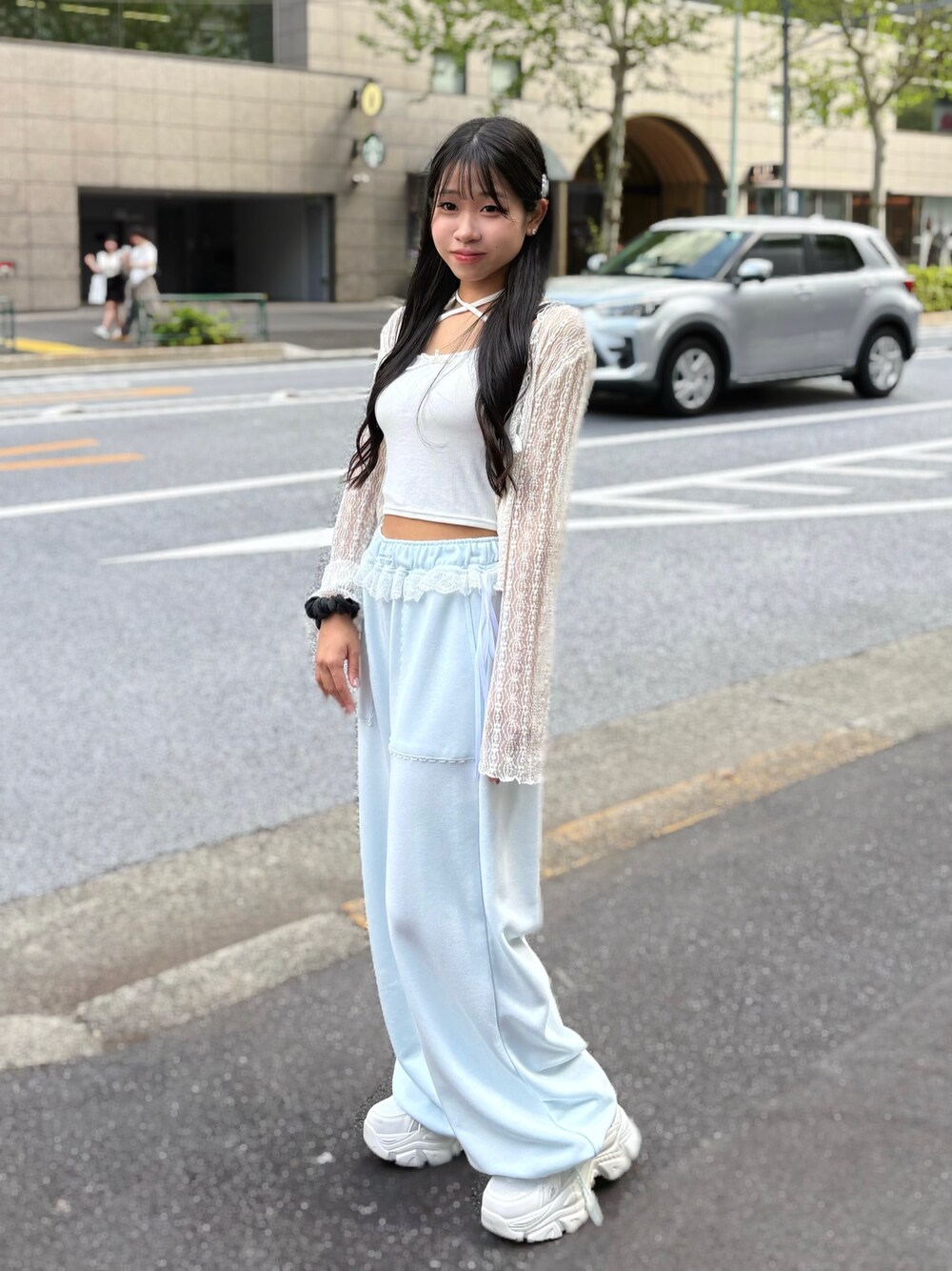155cm/骨格ナチュラル/24cm (Lサイズ) tops: アイボリー pants:サックス shoes: ホワイト レースのトップスとサックスのスウェットパンツで爽やかなリラックスコーデにしました> トップスはキャミソールと着ても、ワンピースなど別のアイテムと合わせていただいても可愛いです♥♥ スウェットパンツは腰のレースがポイントで、裾を絞ると長さを調節できます