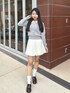 155cm/骨格ナチュラル/24cm (Lサイズ) tops: トップグレー skirt :オフホワイト shoes:ブラウン シルエットが可愛いバルーンスカート✧*。 プリーツがはいっているおかげで広がりすぎず、ふんわりとした形なのでどんな系統のトップスでも合わせやすいです💫 丈も太ももが丁度隠れる長さなのでスタイルアップして見せてくれます!