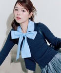 155cm/骨格ナチュラル/24cm (Lサイズ) tops: ネイビー pants: チャコールグレー shoes: ブラック bag:ブラック 大きなリボンが目をひくトップス★*。 ケーブルニットとシャツがくっついているので1枚でレイヤード風に着ていただけます、ミニ丈のボトムスと合わせてガーリーにも、デニムと合わせのカジュアルコーデでも大活躍します!