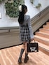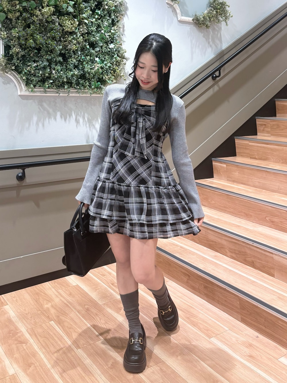 155cm/骨格ナチュラル/24cm(Lサイズ) onepiece: ブラック bag :ブラック 胸元のリボンがポイントのキャミワンピースと二ットトップスのセット★*。 丈と胸元の空き具合は肩紐部分で調節できます!! ワンピースにデニムパンツを合わせてカジュアルに着るのも可愛いです♡♡ tシャツを中に着たり、カーディガン、アウターを羽織るだけでどの季節でも着まわせるアイテムです!ブラックは大人ぽくコーデがきまります🍀.*
