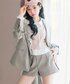 155cm/骨格ナチュラル/24cm(Lサイズ) jacket :ブラウン tops: オフホワイト pants : ブラウン bag :アイボリー レースデザインが華やかなテーラードジャケット ★*。ゆったりとした形なので織りやすく、硬い印象になりません!!袖にはガーリーさをプラスしてくれるフリルとリボンが付いています ✨ 丈はおしりが隠れるたけなのでミニ丈を合わせると裾がチラッと見えてかわいいです! デニムやロングスカートであわせてるとフェミニンで大人ぽい雰囲気でコーデが完成します シャツはお腹が隠れるくらいのショート丈なのでハイウエストのボトムスと合わせるとスタイルアップ効果抜群です! サイドがドロストデザインなのでアウター合わせでなくても1枚でとても可愛いです♡