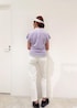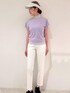 涼しい快適素材が嬉しい ラメコンビエンボスロゴプルオーバー は、清涼感あふれるシアサッカー素材の美脚テーパードパンツ と合わせてコーディネート! 上品なラメコンビ使いが可愛い大人気のプルオーバーは二の腕をカバーする長めのフレンチスリーブも人気のポイントです。 シアサッカー素材を使用したテーパードパンツは、サイドの細ラインがさりげないアクセントとなり、縦長のシルエットを強調し脚をすっきりと見せる効果もあり、軽量で通気性に優れており、暑い季節でも快適な着心地で大活躍です!!