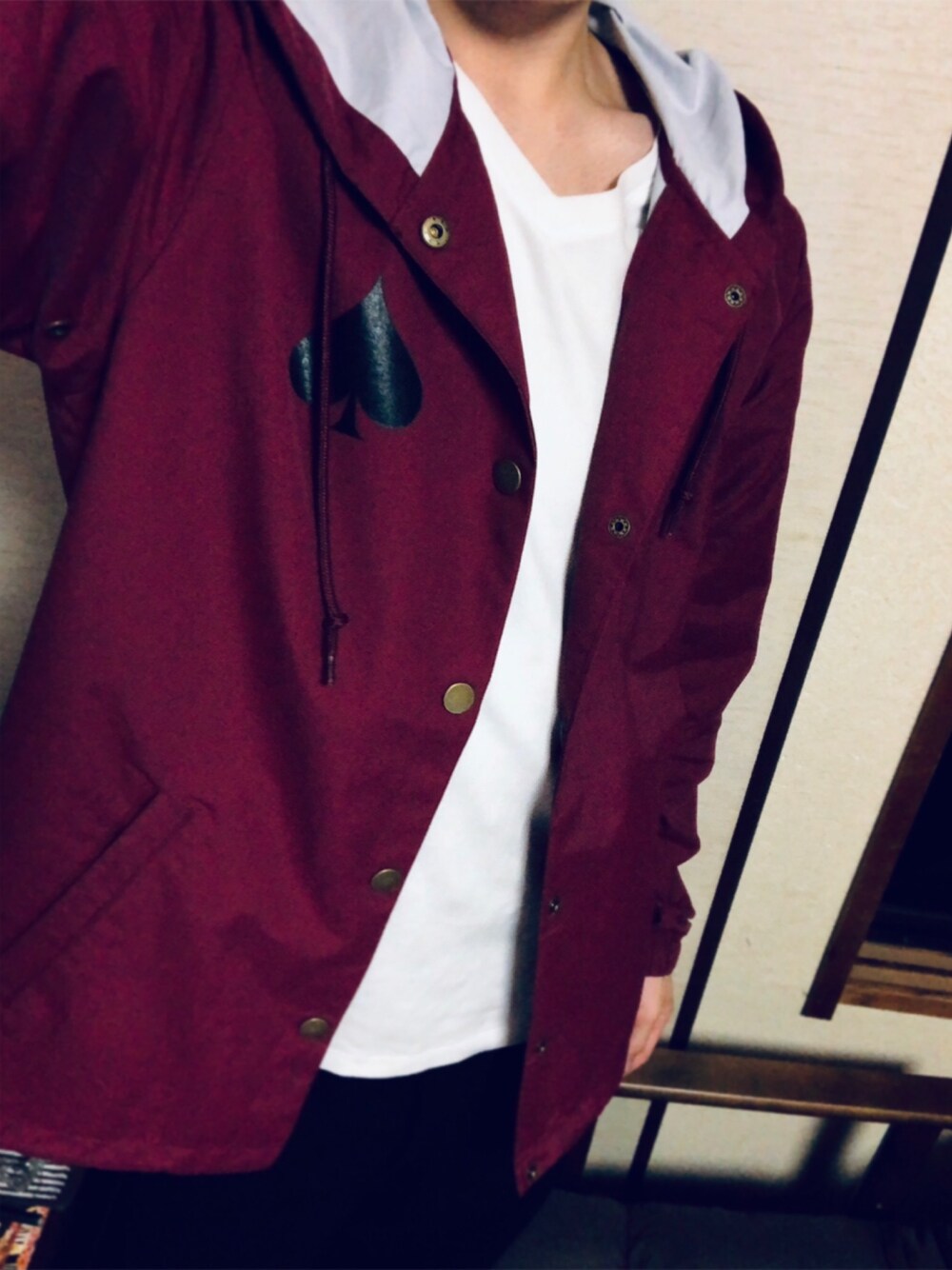 Rのナイロンジャケット「NEW OATH HOODY COACH JACKET/スラッシャー フードコーチジャケット ユニセックス バックプリント」を使ったコーディネート
