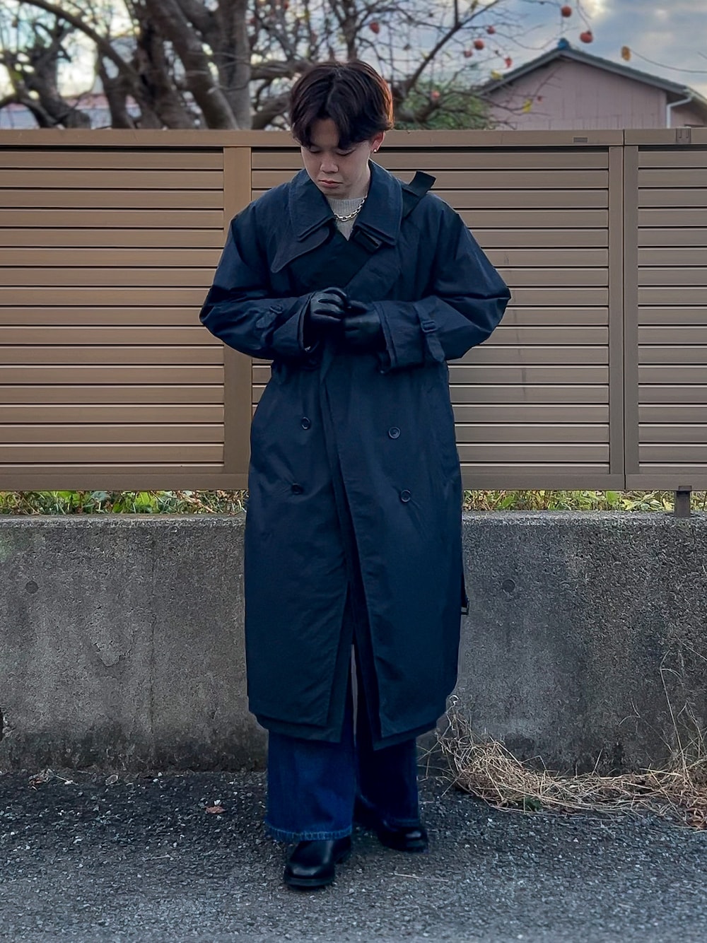 ゐをりのトレンチコート「Nylon Covered Trench Coat NAVY サイズ2」を使ったコーディネート