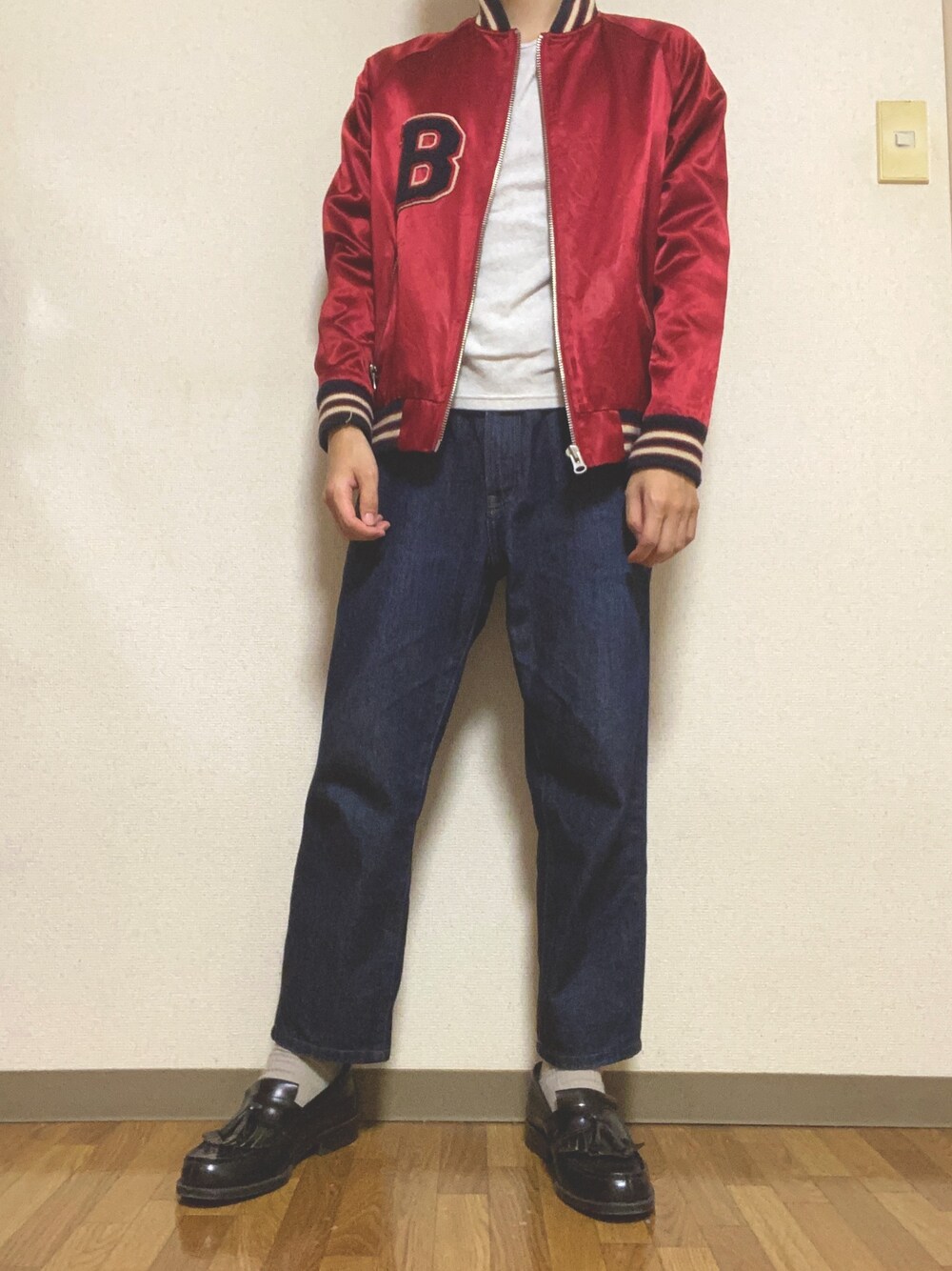 UNIQLO¥4,389HOLLYWOOD RANCH MARKETMOUSSYHARUTA¥14,300UNIQLOこの画像から似たアイテムを検索できます22838お気に入り (5)380KuriさんへのコメントNO COMMENTコメントはスマートフォン用アプリからご利用できます着用アイテム¥4,389UNIQLOUNIQLOデニムパンツ (ブルー系)デニムパンツサイズ:28着用コーデ:318件探すZOZOTOWNで探すHOLLYWOOD RANCH MARKETHOLLYWOOD RANCH MARKETTシャツ/カットソー (ホワイト系)Tシャツ/カットソー探すZOZOTOWNで探すMOUSSYMOUSSYジャケット/アウター (レッド系)ジャケット/アウター探すZOZOTOWNで探す¥14,300HARUTAHARUTAローファー (ブラック系)ローファーサイズ:25.0cm着用コーデ:117件商品を見るZOZOTOWNで購入するUNIQLOUNIQLOソックス/靴下 (ベージュ系)ソックス/靴下探すZOZOTOWNで探すKuriのデニムパンツ「レギュラーフィットテーパードジーンズ(丈標準73~76cm)」を使ったコーディネートコメントを表示2020.10.15着用ブランドUNIQLOHOLLYWOOD RANCH MARKETMOUSSYHARUTAタグ#秋コーデ#低身長#スカジャン#レッド#デニム#ローファー#moussy#HOLLYWOOD RANCH MARKET#ユニクロ#HARUTAモデル情報男性・161cmミディアムヘアー似ているアイテムUNIQLO × デニムパンツHOLLYWOOD RANCH MARKET × Tシャツ/カットソーMOUSSY × ジャケット/アウターHARUTA × ローファーUNIQLO × ソックス/靴下Kuri@rikuo1021 / 161cm / MEN / ミディアムヘアー0コーディネート0フォロワー注目のコーディネートアプリでもっと見るもっと見る