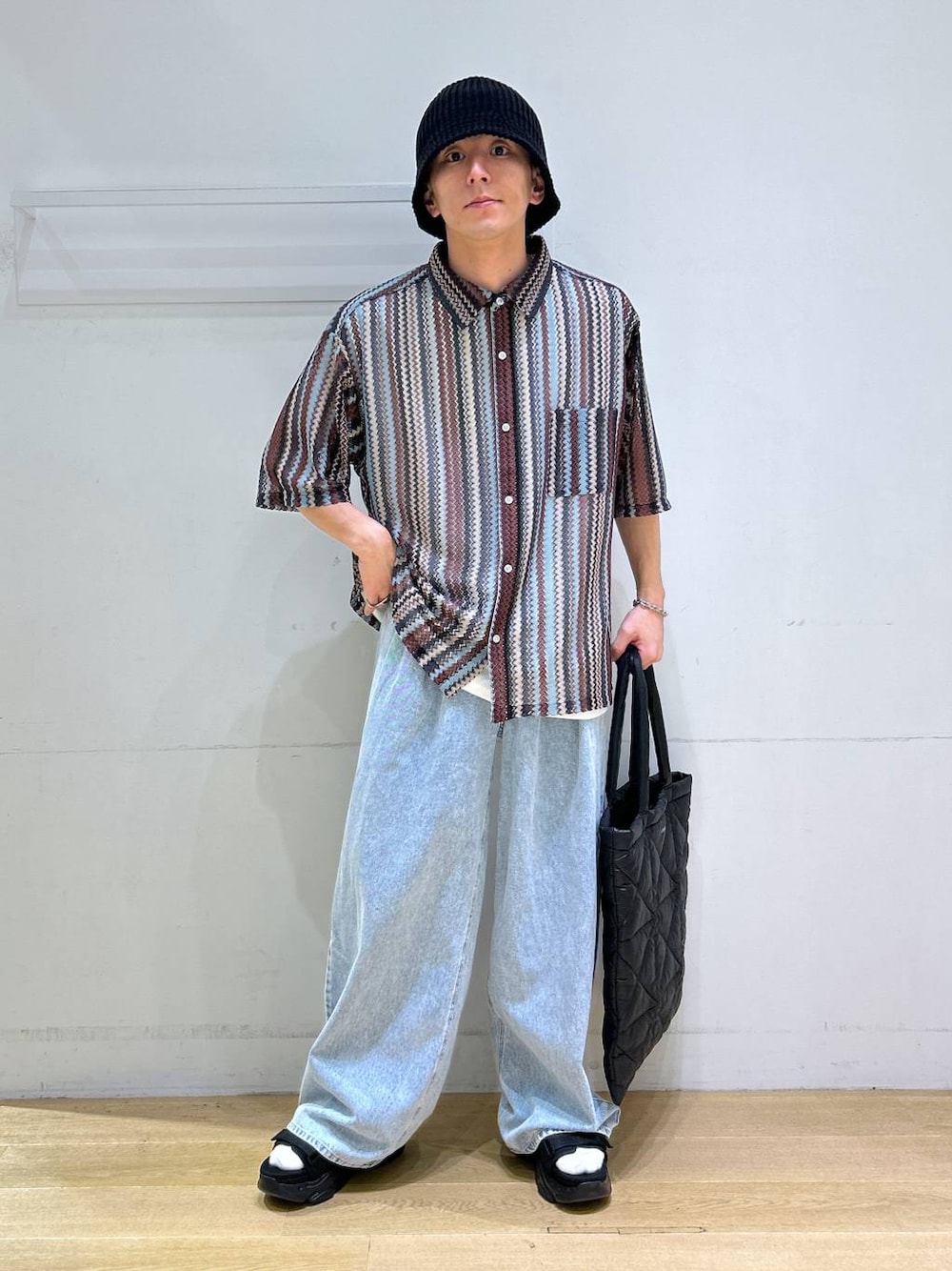 ・透かしのメッシュニットシャツ🧶 着用XLサイズ トレンド感もありつつ落ち着いた配色で、大人っぽくおしゃれなコーデになります😌 ボトムス次第でキレイ目にもカジュアルにも🦺 他のカラーも可愛いので見てみてね☑️ ウエストがフックになってるウィメンズデニム😳 着用Mサイズ フックで調節できるのが便利すぎる!🤧🔥 タックインしてもごわつかない👍 丈感はかなり長めなのでサイズ小さめでも良さそう🔗