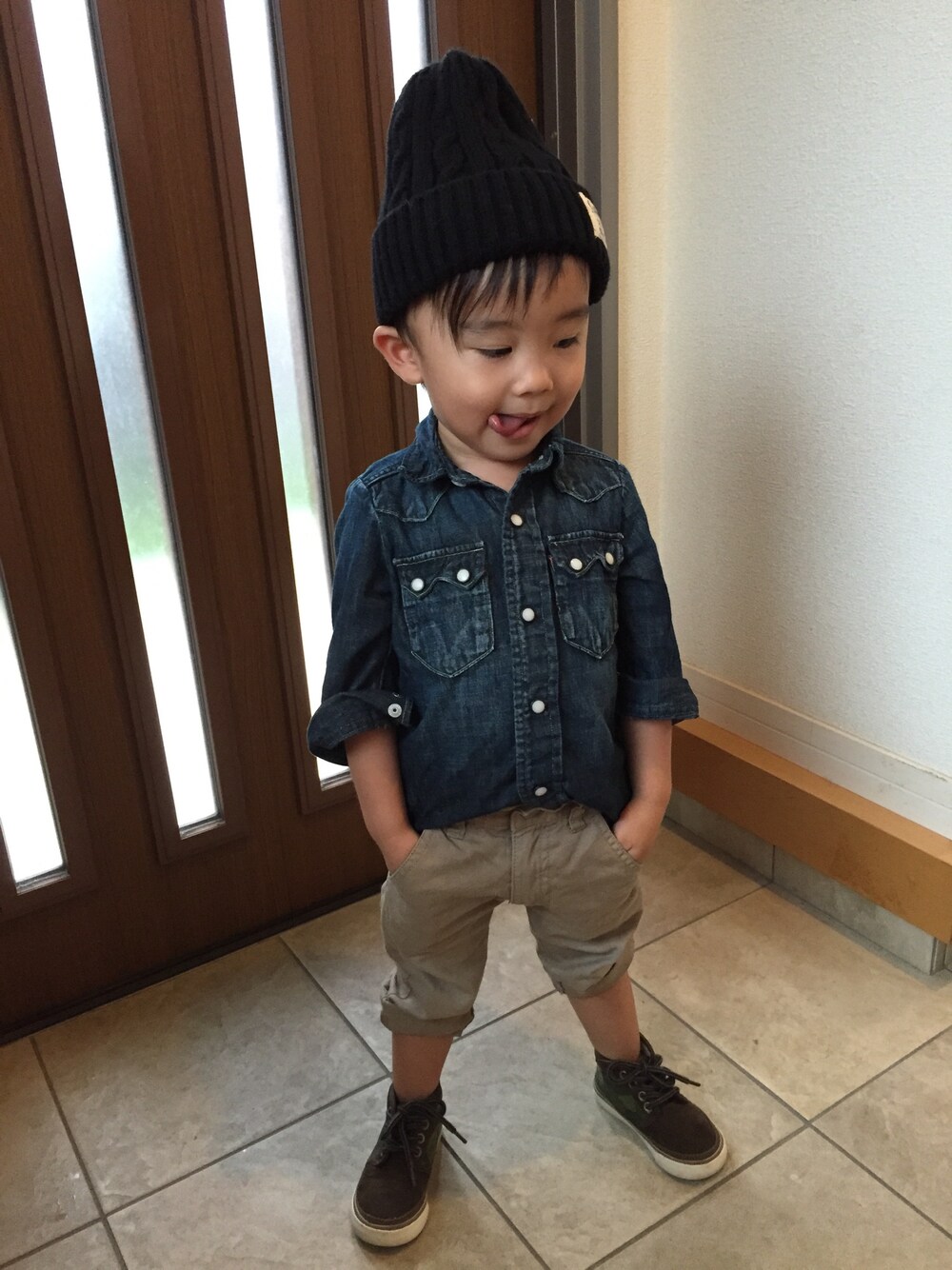 一気に肌寒くなりましたね😯😯 雨は嫌だな☔️ 晴れてくれ〜💓☀️ ひさびさに靴履かせたらきつそぉ😅 成長してますね👐 次男へお下がり〜😝👌