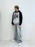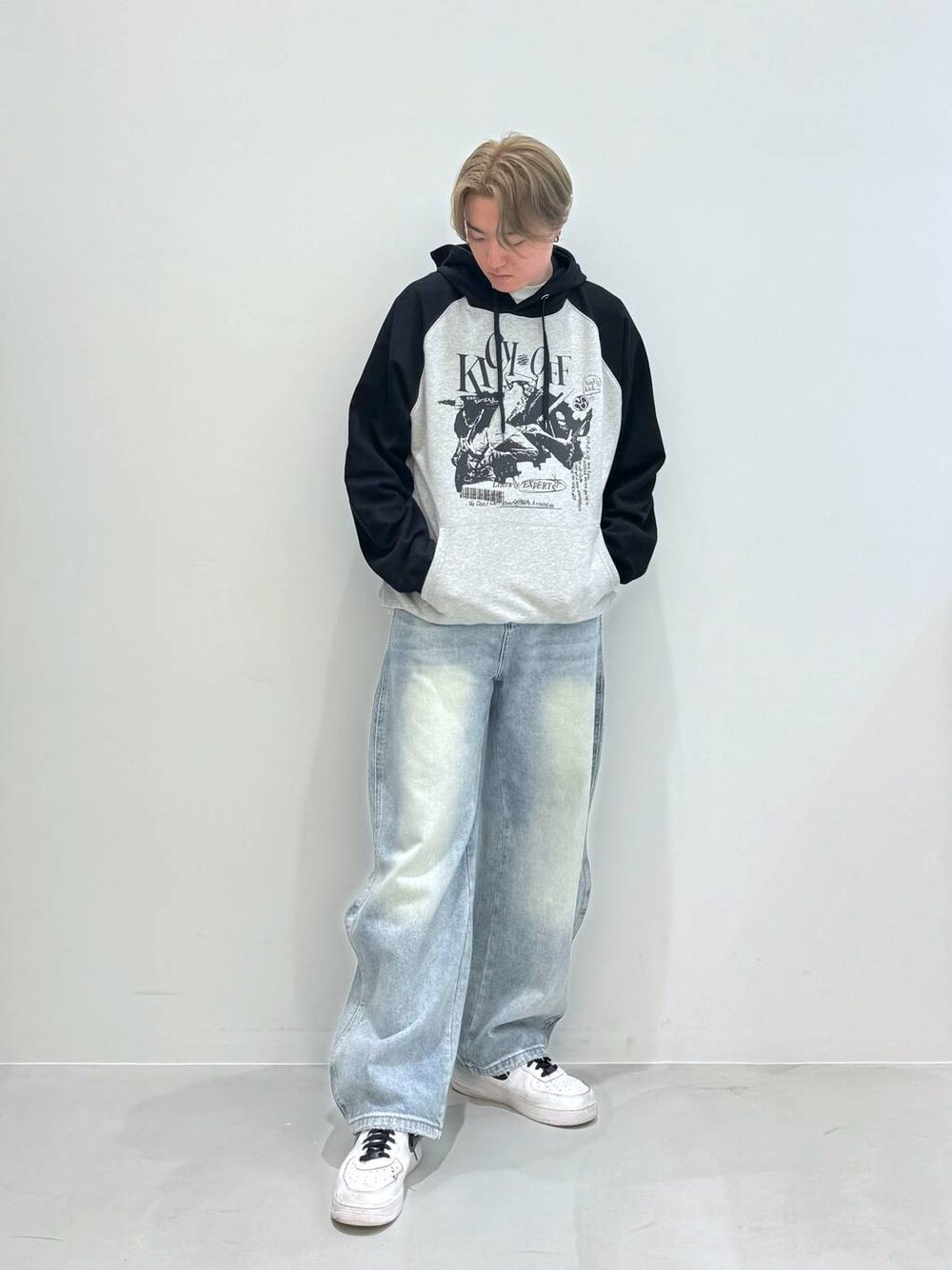 ⭐各アイテムのおすすめポイント  ̄ ̄ ̄ ̄ ̄ ̄ ̄ ̄ ̄ ̄ ̄ ̄ ̄ ̄ ̄ ̄ ̄ 【トップス】NASTYKICK:L 前面に大きくデザインが入っており袖とフードの部分が黒色で胴がグレーに別れていて可愛いパーカーになっております! ウラケなので春にもってこいのアイテム! 【ボトムス】INFLATION:L ウェーブが付いていることにより溜まってるシルエットになってくれるアイテム! ウォッシュ加工も入っており可愛いパンツになっております! おすすめアイテム!