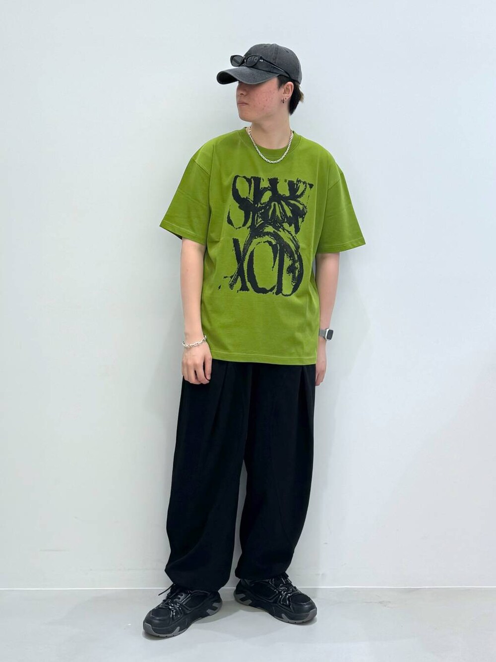 ⭐各アイテムのおすすめポイント  ̄ ̄ ̄ ̄ ̄ ̄ ̄ ̄ ̄ ̄ ̄ ̄ ̄ ̄ ̄ ̄ ̄ 【トップス】SLOW ACID:L 前面に黒色で大きくデザインが入っており、このデザインのおかげで色物の服が着やすくなっております! 生地感は綿とポリエステルが入っているためしっかりとしておりサラサラとした肌触りでとてもよくシワが付きづらいためおすすめです! 【ボトムス】3.3FierdTrip:F ゆったりとしたシルエットがとても可愛いです! 足先には絞りも付いているので色々な方に履いて頂きやすいアイテムになっております! 生地は薄く夏に涼しく履けるアイテムになっております!