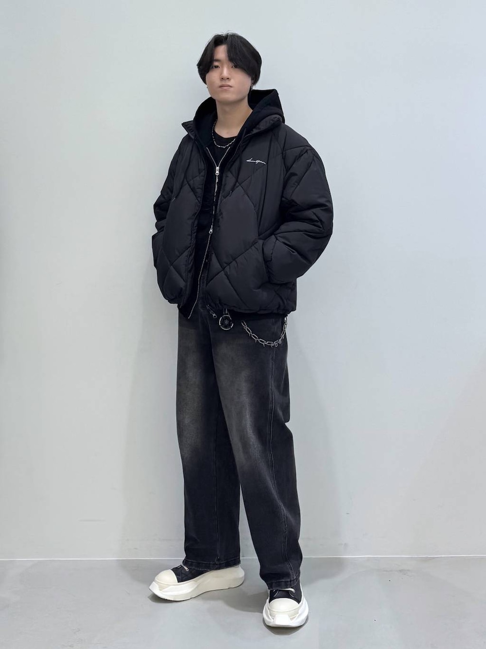 ⭐各アイテムのおすすめポイント  ̄ ̄ ̄ ̄ ̄ ̄ ̄ ̄ ̄ ̄ ̄ ̄ ̄ ̄ ̄ ̄ ̄ 【アウター】SAINTPAIN:M ひし形のデザインが効いた可愛いアイテム! 生地はやや膨らみはあるもののスタイリッシュに着やすいです! サイズ感は大きめで、腰サイドに絞りが付いており自分好みに使っていただけます! 【ボトムス】3.3FieldTrip:L ウォッシュ加工が入ってる可愛いアイテム サイズはS~Lまであり自分好みのサイズを選んでいただけやすいです! (注意Sサイズはレディース向けで作っておりとてもウエストが細くなっているため腰が細いメンズの方でと要注意❗️)