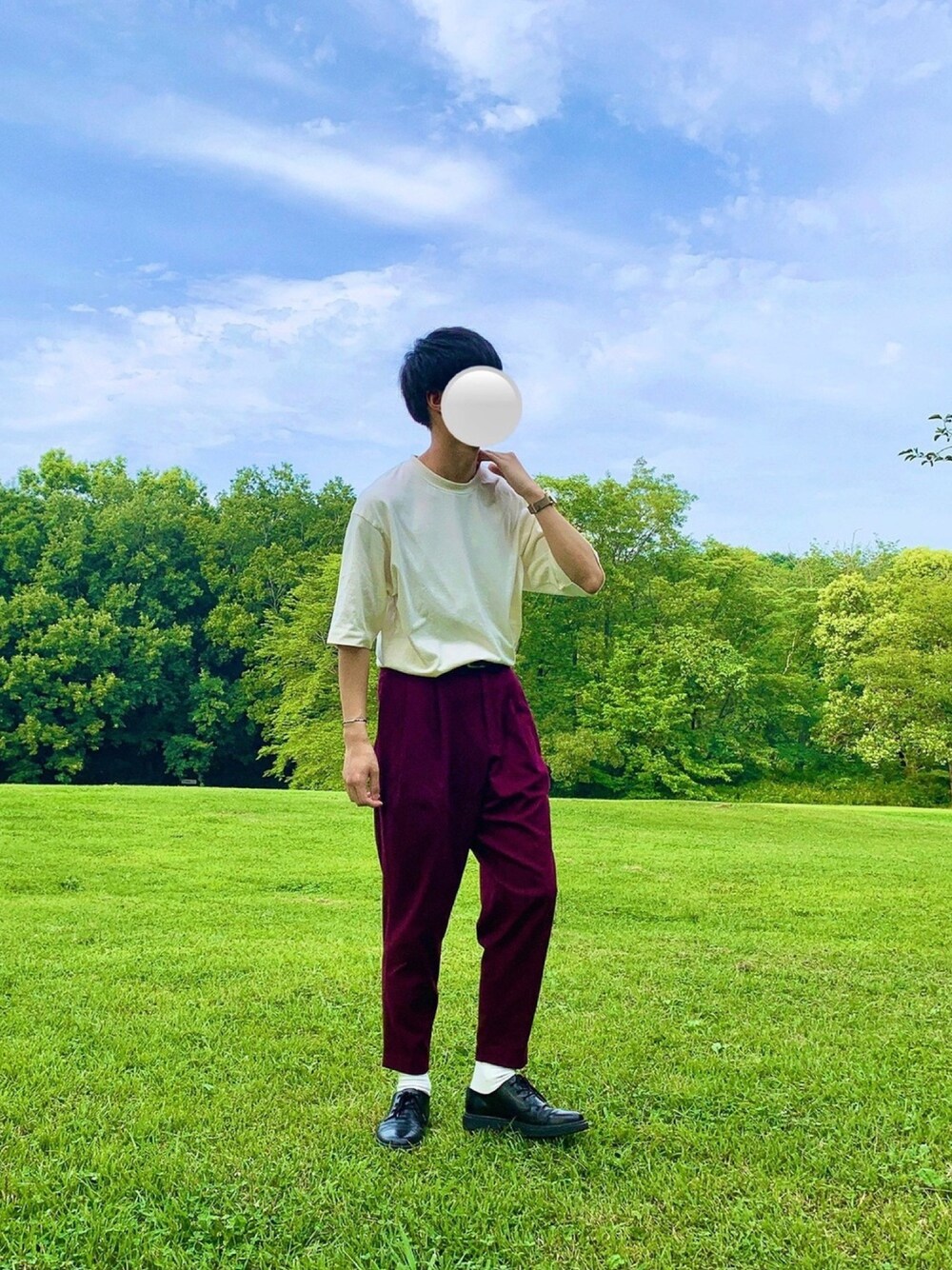 いつもご覧頂きありがとうございます♪ スピさん❣️ ともくん❣️ N子さん❣️ 昨日は素敵なフォルダに入れて頂きありがとうございました🙇♂️嬉しいです😆 本日のコーディネートは… めっちゃ前に投稿したコーデのシャツなしバージョンです⭐️ シャツがあるかないかの差で雰囲気が変わるので、コーディネート組むのって楽しいですよね♫ 夏はTシャツを着るのが1番涼しいし、快適に過ごせるので、インパクトの強いボトムスを使うと簡単にお洒落もできるし涼しいし着回しもしやすいのでお勧めです⭐️ 最後までお読み頂きありがとうございました😊 では、良い1日を〜