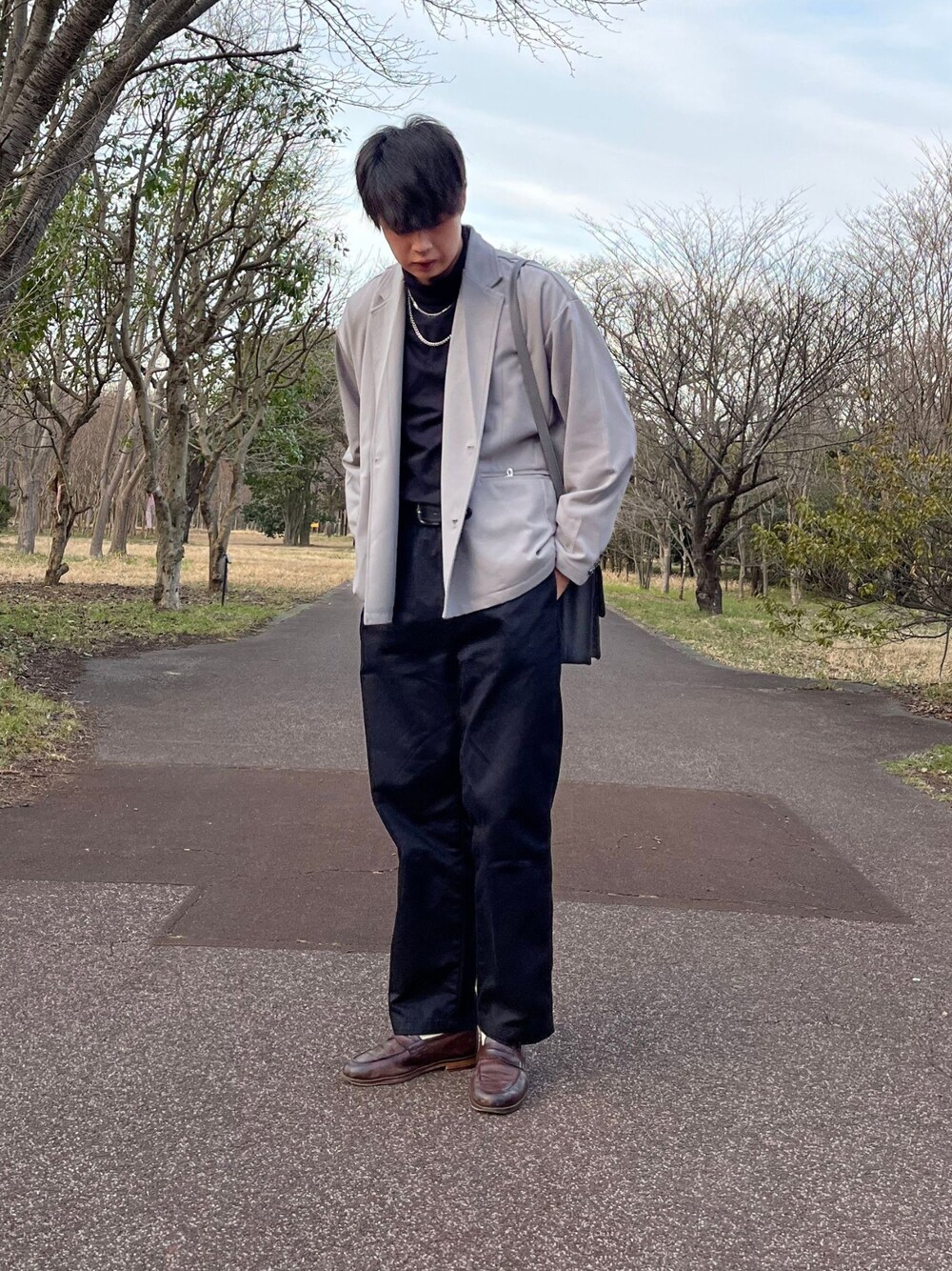 rikのセットアップ「【セットアップ】 ジョーゼットストレッチオーバーサイズダブルテーラード2Bジャケット×ワイドトラウザーズ」を使ったコーディネート
