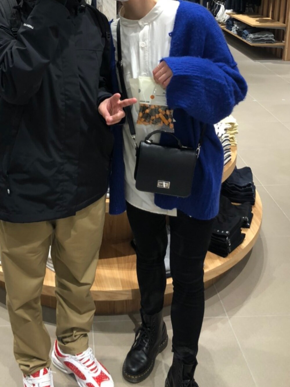 お気に入りのカスタネのニット🧶 いろんな着方もできるし、色もかわいいし、ピンクも買いたかったと後悔、、 クルーネックのシャツはアウトレットのwclosetで買いました。