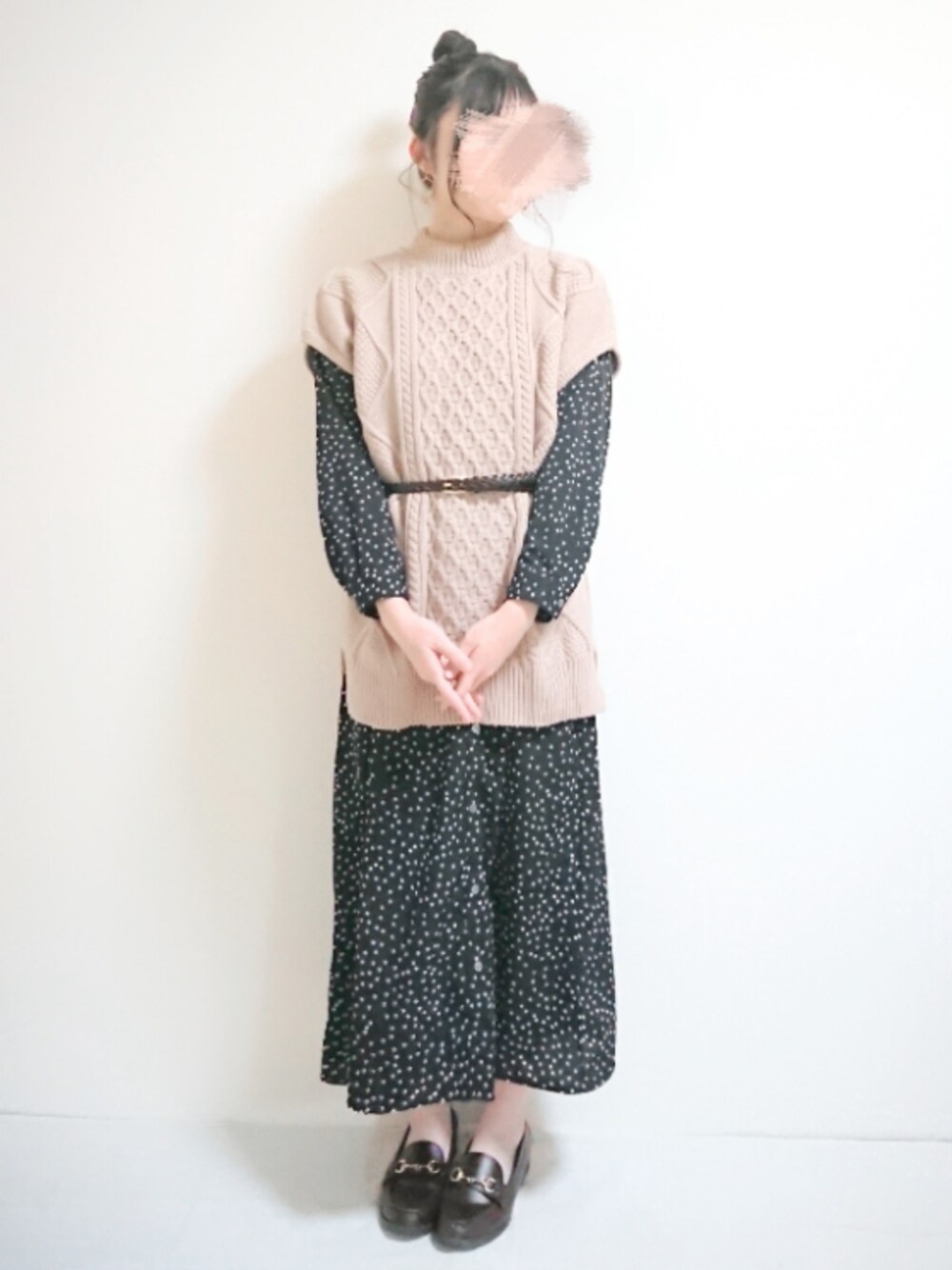 ワンピース×ニットベストのきれいめコーデ✨ ドットのワンピースにハイネックのニットベストで、 きれいめだけど 少し個性の出たコーデになったのではないかと思います🧸 インスタもしているので、よかったら見てみてください💓 Instagram→risa_wear