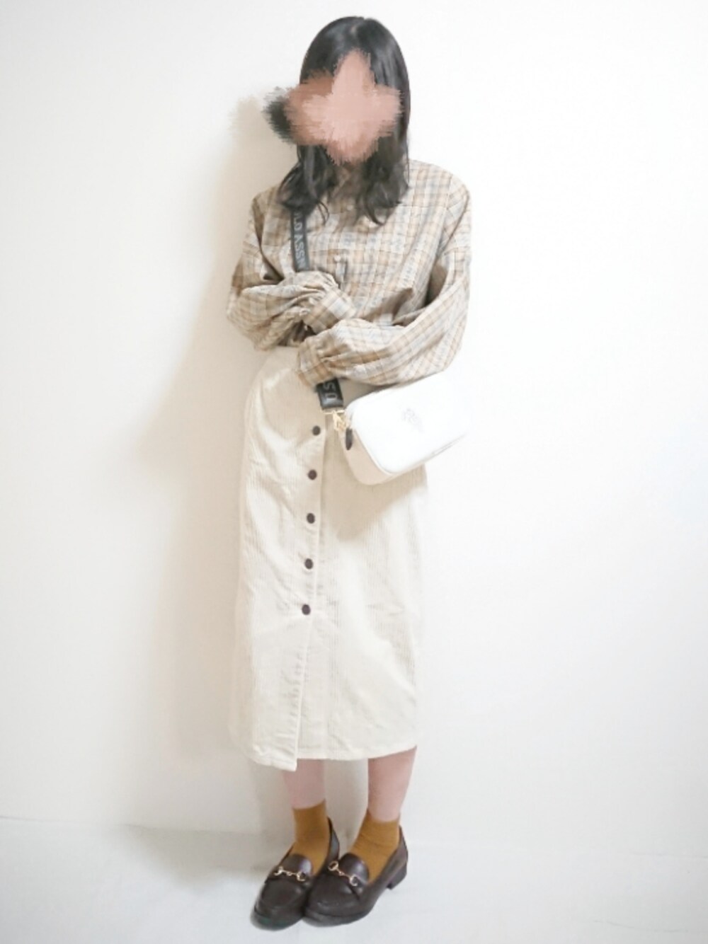 チェックシャツコーデ🥞 スカートとショルダーバッグを コーデュロイ素材に合わせました🥧 コーデュロイを取り入れることで 冬感が増しますね❄️ インスタもしているので、よかったら見てみてください💓 Instagram→risa_wear