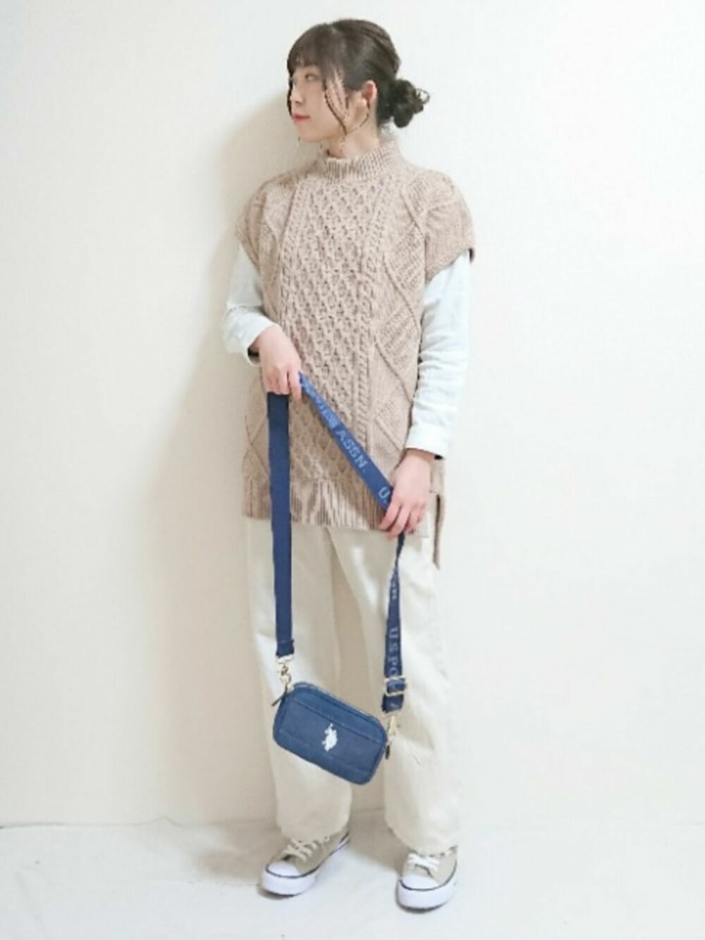 ニットベストを使ったベージュコーデ🥰 U.S.POLOさんのショルダーバッグを差し色でいれてみました(’-’*) ボトムスとバッグの素材をデニムで合わせて統一感を出しました🤗🌷 インスタもしているので、よかったらみてみてください💓 Instagram→risa_wear