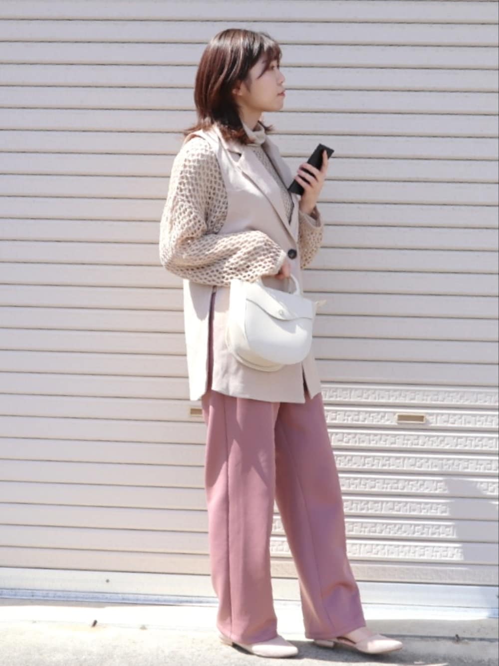 ベージュ×ピンクの春コーデ🌸 GRLで購入したジレが形がきれいでお気に入りです.*・゚